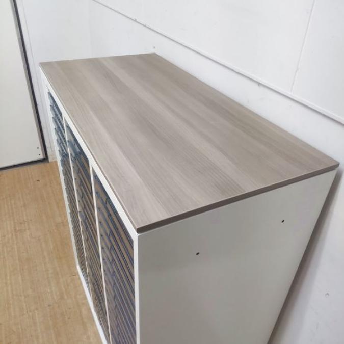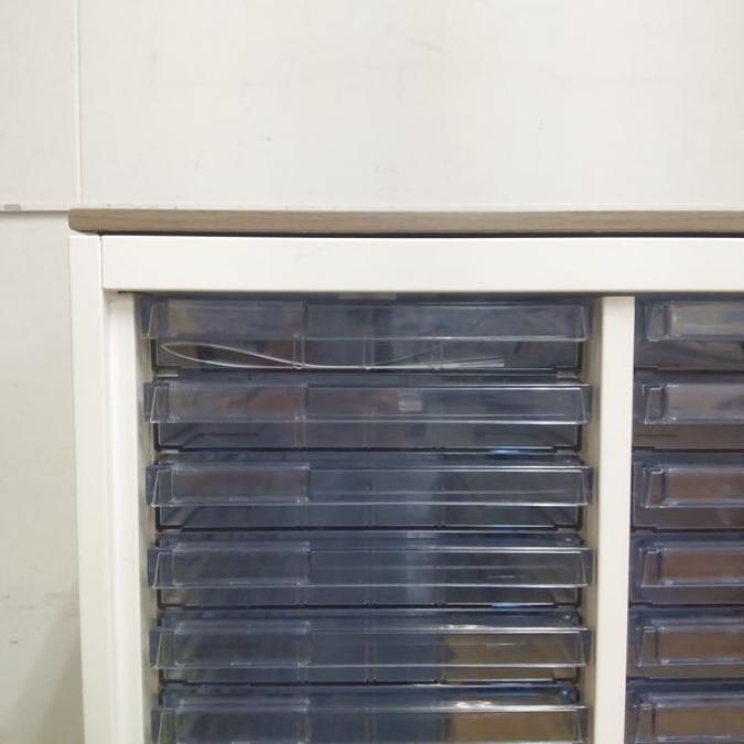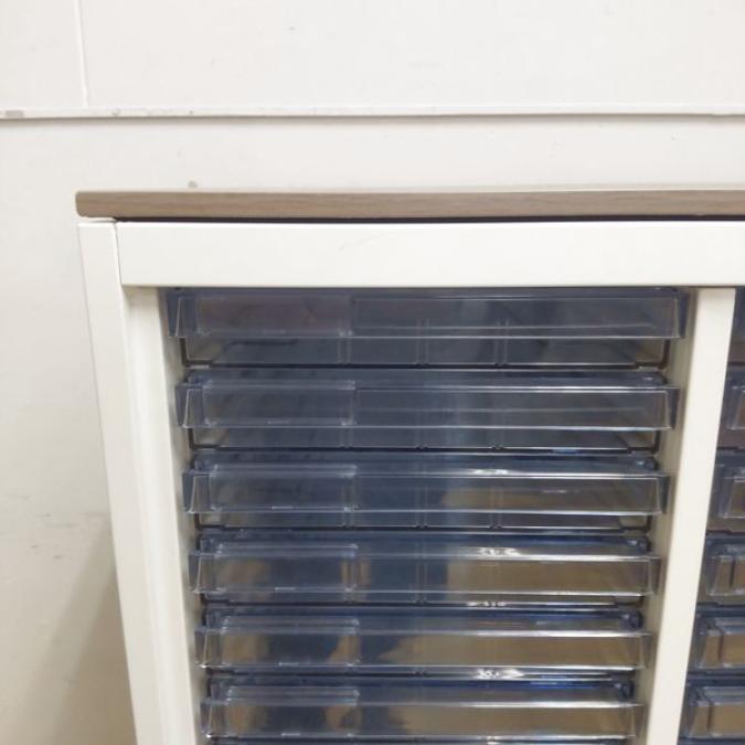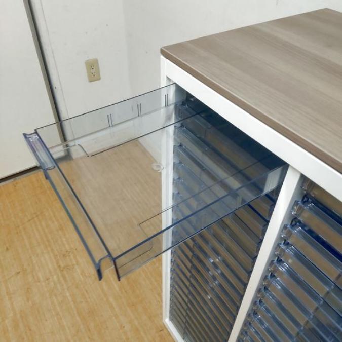 ★オカムラ製 レクトライ ホワイト 3列x16段 浅型x11段/深型x5段混在 W900xD450xH1150サイズ 天板付 クリスタルトレーキャビネット クリスタルトレイ!!