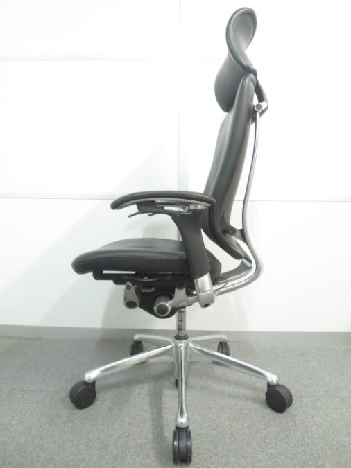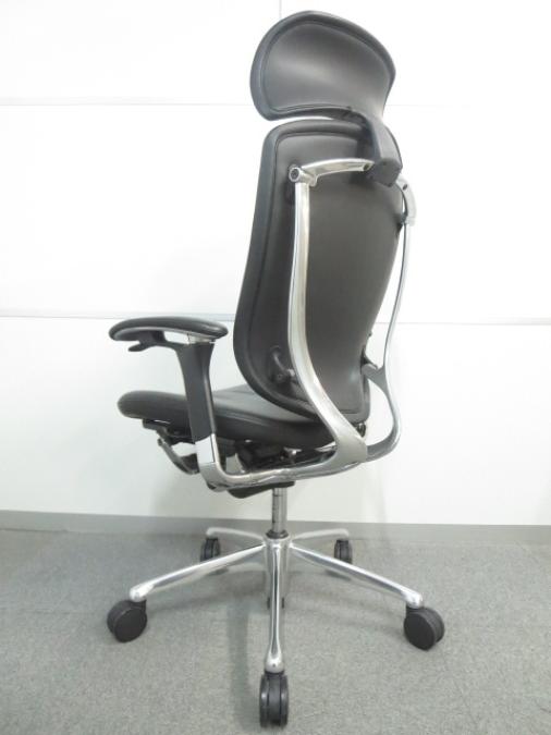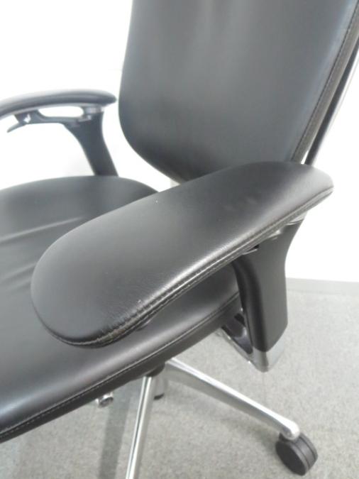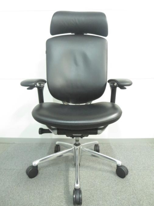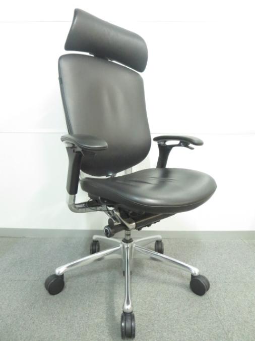 【訳アリ】上下昇降が鈍いためお安く! ■オカムラ製 コンテッサチェア 背座総革張り 可動肘 ヘッドレスト付 ■高級感漂うデザイン!エグゼクティブにオススメ!- 川崎店