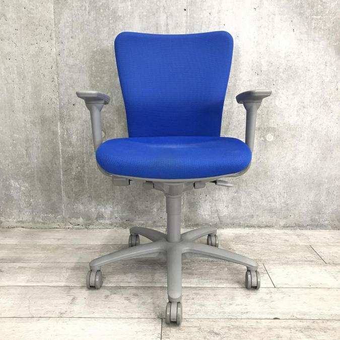 オカムラ カロッツァ 可動肘付きチェア ローバックモデル ダークブルー×ブラックフレーム ※使用感強め・一部の部材欠けのため特価