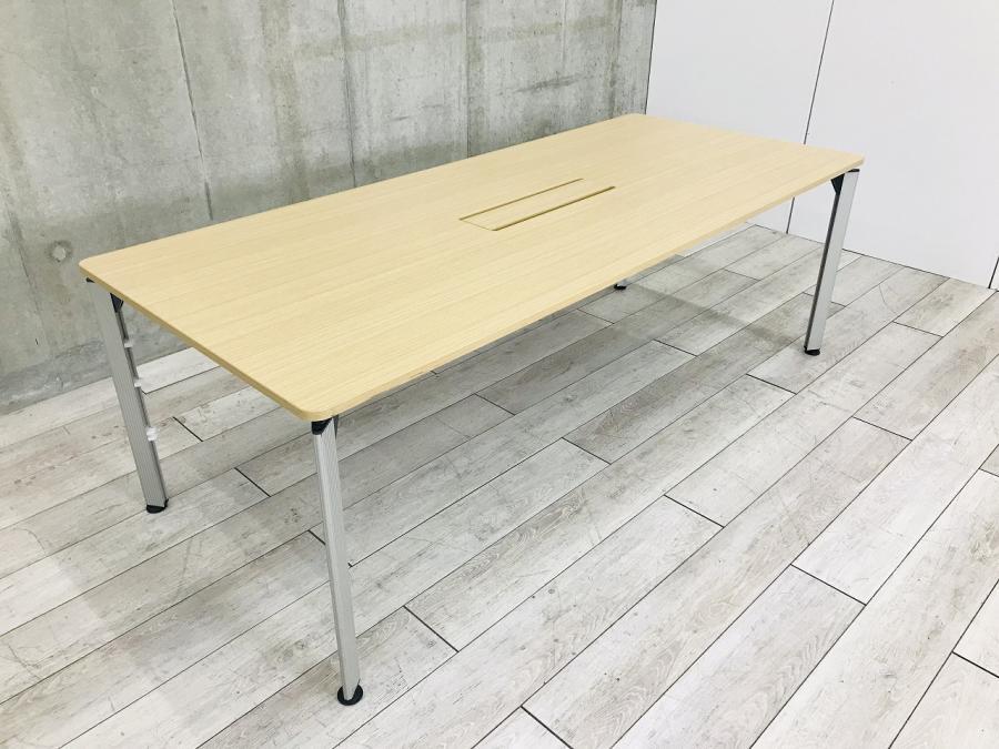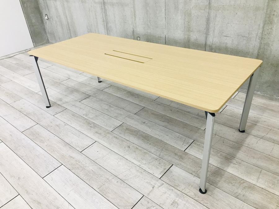 【配線ボックス付き!】幅2100㎜サイズ!ナチュラル天板のスタンダードなミーティングテーブルが入荷 ■イトーキ ミーティングテーブル ■4~6名様でのご利用にオススメ!幅2100×900㎜ 【応接用・会議室や休憩スペースにも】- 足立・葛飾店