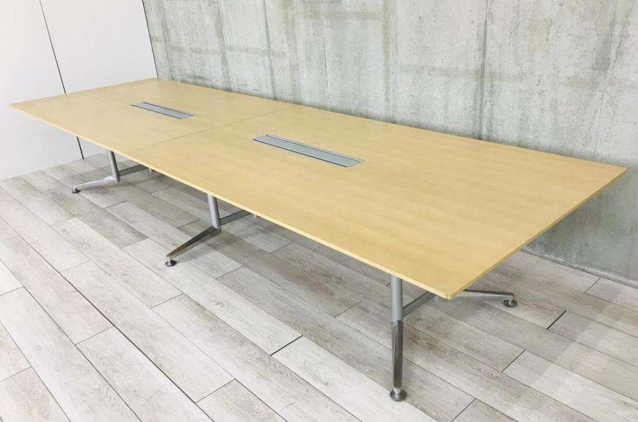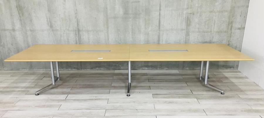 【大切なお客様を招くお部屋にも!人気の木目カラー大型テーブル!】■プラス 大型会議テーブル W4000㎜ 色:木目ナチュラル ■便利な配線口付き 【打ち合わせや応接などにピッタリ!】- 足立・葛飾店