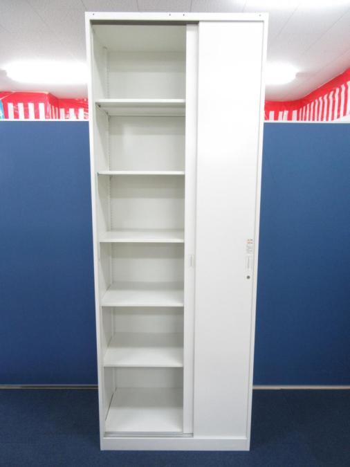 2枚引き戸書庫 オカムラ レクトライン 鍵付き シリンダー錠 ホワイト 天板無し スライド式の扉のため導線を邪魔しません