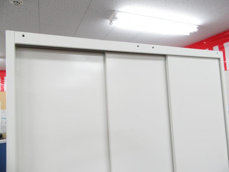 オカムラ製 人気レクトラインシリーズ ホワイト シリンダー W800xD450XH1050 3枚引戸 ※ベースなし 3枚引き違い書庫!!