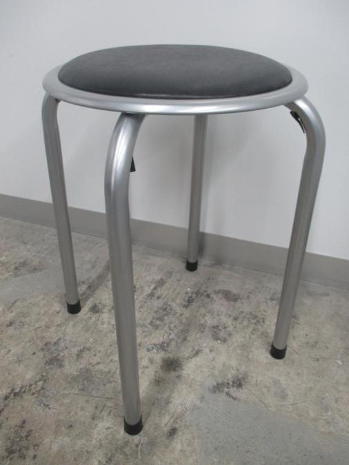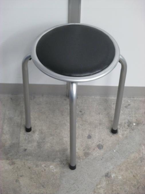 ★未使用品!【いろいろ使えて便利!】■丸イス ブラック レザー張り ■コンパクトに重ねて収納できます!【サークルチェア】- 川崎店