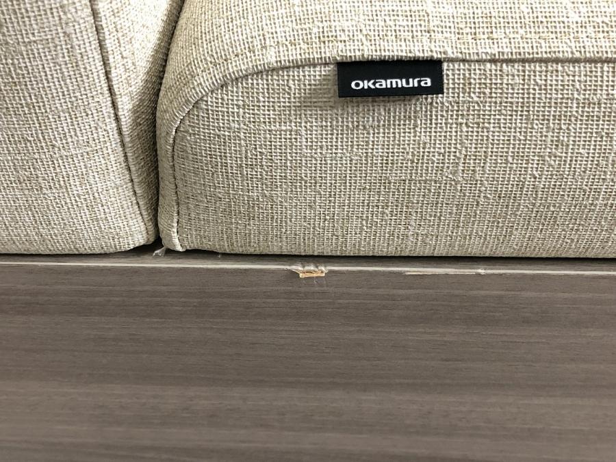 - 目立つ箇所複数あり深い傷・破れ・ほつれ・へたり・しわが商品全体にある。(例、座面・背もたれ、脚部等にある。)