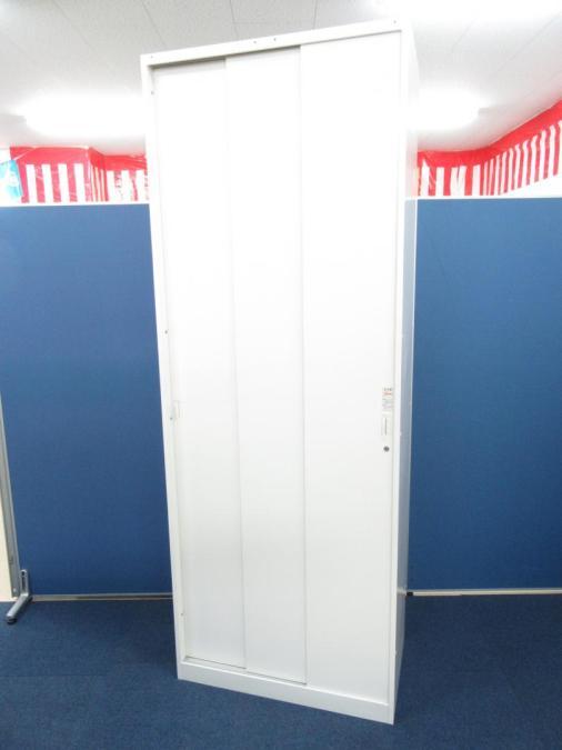 オカムラ製 人気レクトラインシリーズ ホワイト シリンダー W800xD450XH1050 3枚引戸 ※ベースなし 3枚引き違い書庫!!