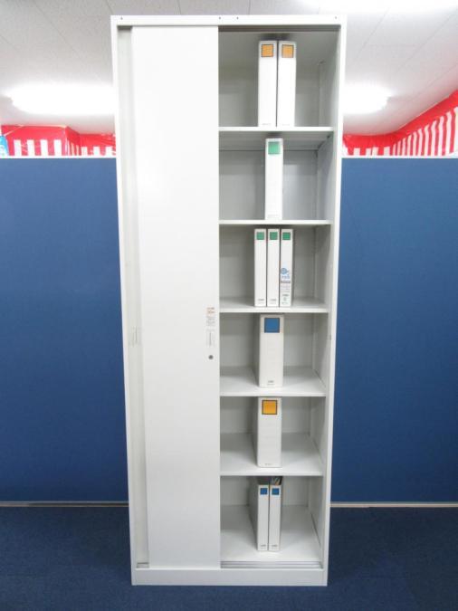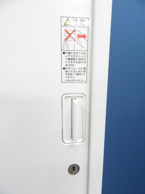 2枚引き戸書庫 オカムラ レクトライン 鍵付き シリンダー錠 ホワイト 天板無し スライド式の扉のため導線を邪魔しません