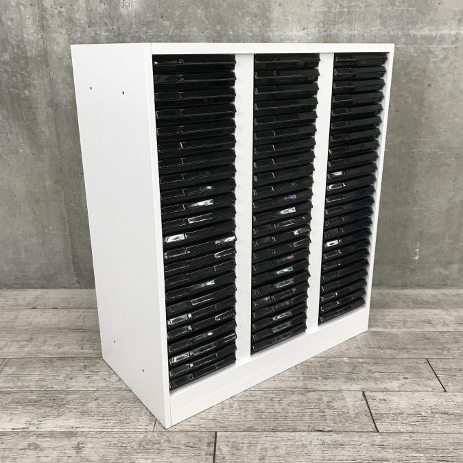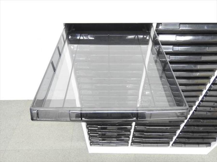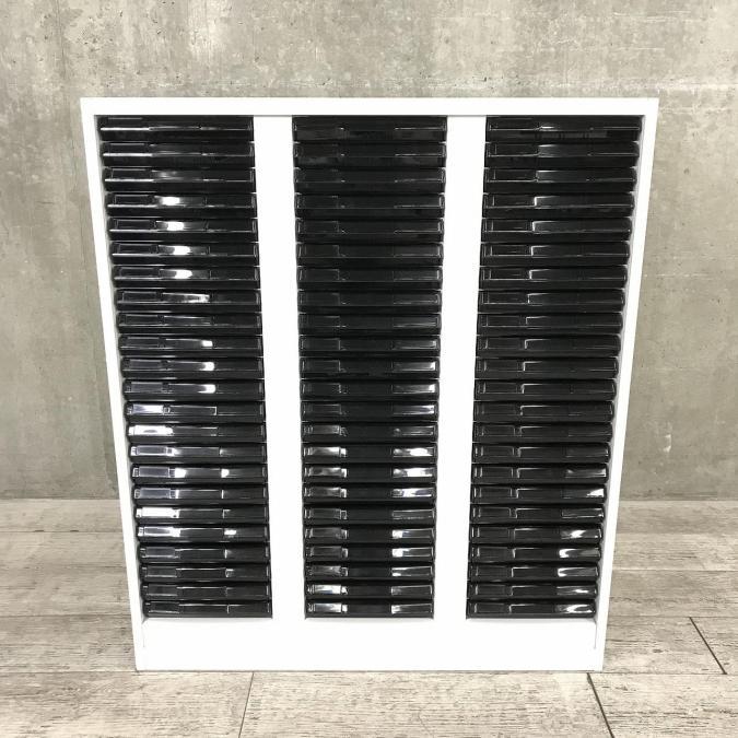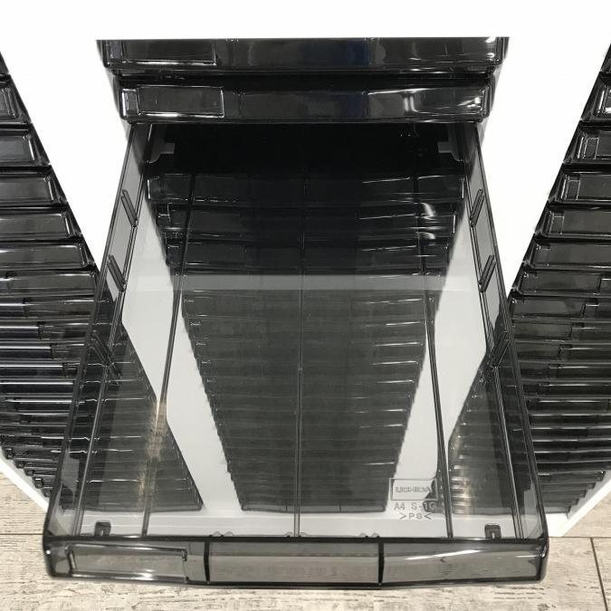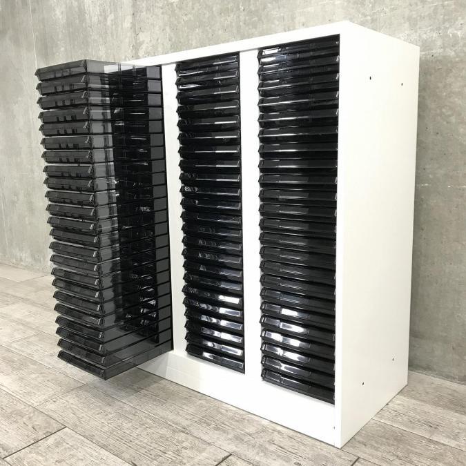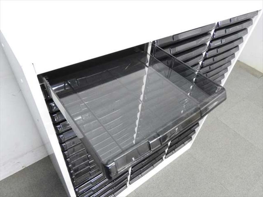 【書類・備品整理の必需品!】【珍しいクリトレが入荷!3列×浅型11段+深型6段】■ウチダ(UCHIDA)製 BEストレージシリーズ クリスタルトレー ローキャビネット ■3列×浅型11段+深型6段 ■色:ホワイト/トレイ:ブラック