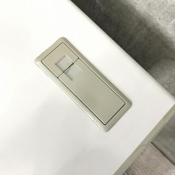天板は脚部から少しはみ出す形になっており、その部分に配線口を搭載。