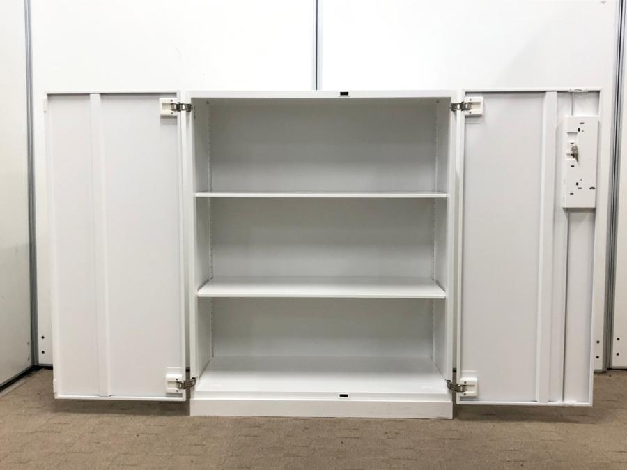 コクヨ製 エディアシリーズ ホワイト シリンダー 施錠 収納物がひとめで分かる両開き戸タイプ! ローキャビネット 両開き書庫!!【関西倉庫在庫】 【弊社使用欄:A01048871】
