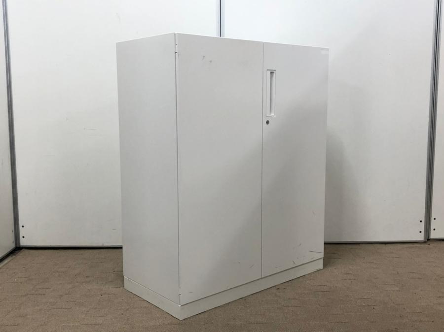 【収納物がひとめで分かる両開き戸タイプ!】■コクヨ(KOKUYO)製 エディア(EDIA)シリーズ 両開き書庫 ローキャビネット H1130㎜ ■天板・ベース付 ■ホワイト ■シリンダー錠