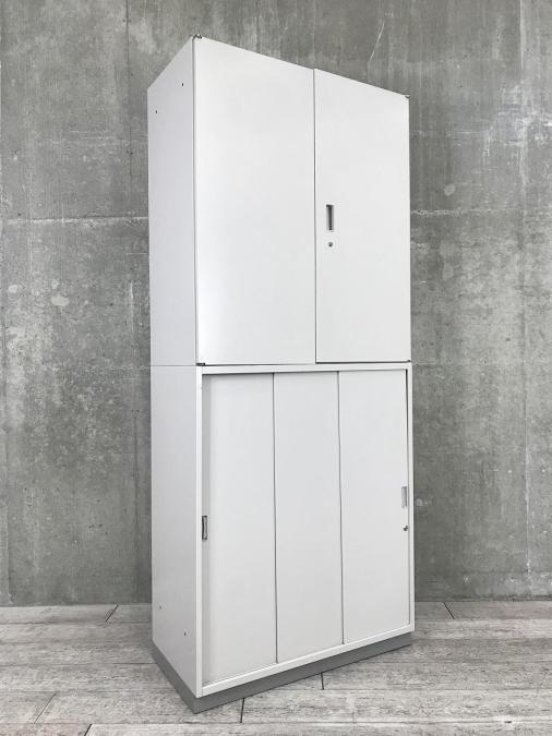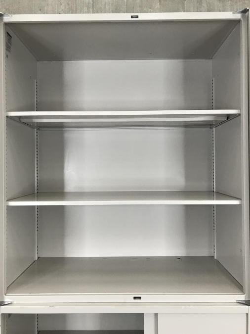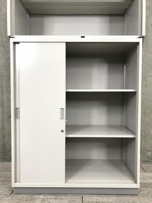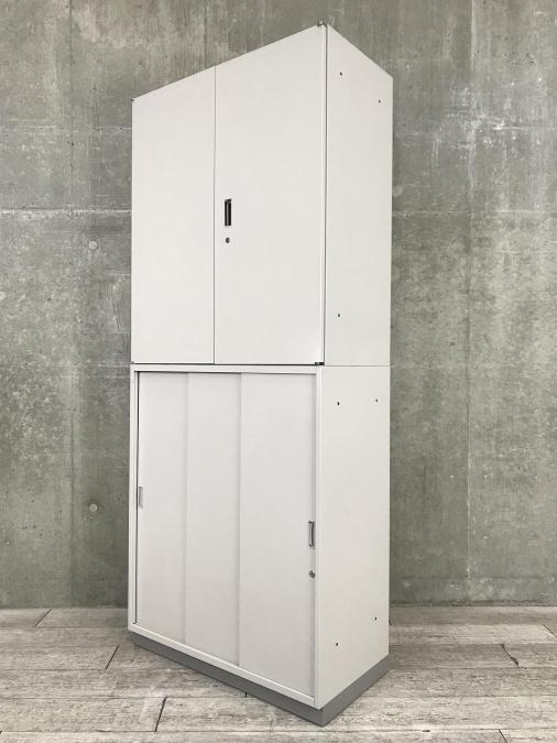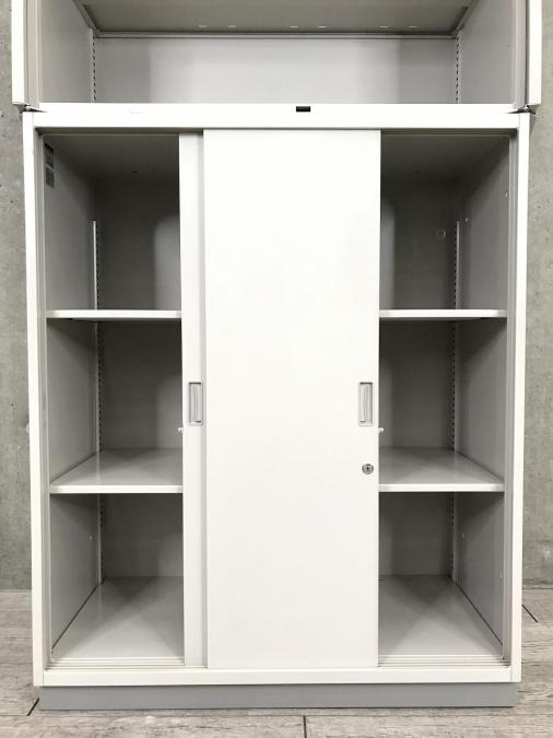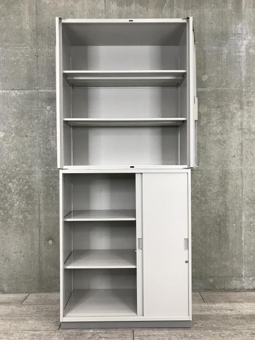【在庫入替えセール!】大容量!人気シリーズの上下書庫セット!オフィス書類を一気に整理■イトーキ製(ITOKI) シンライン 両開き戸+3枚引き戸 書庫セット ■グレー- 足立・葛飾店