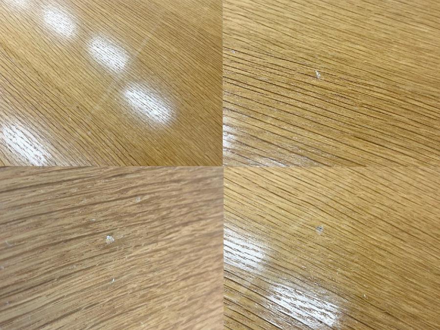 - 目立つ箇所あり傷・凹みが多数、深い傷・凹みが一部ある。(例、天板、幕板、棚板、サイド部分、脚部等にある。)