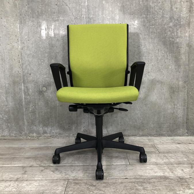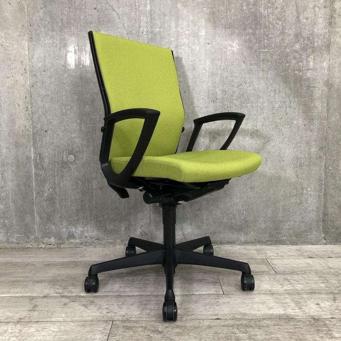 【定番のミドルクラスチェアが入荷!】雰囲気をアゲる今流行りの明るいグリーンカラー! ■オカムラ/エスクード/イエローグリーン 固定肘付き