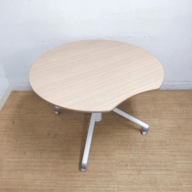 【在庫入替セール】イトーキ ソレイユテーブル アップル型フルスペックタイプ ナチュラル天板 キャスター付き 折り畳み式 上下昇降720mm~1000mm- 名古屋千種店