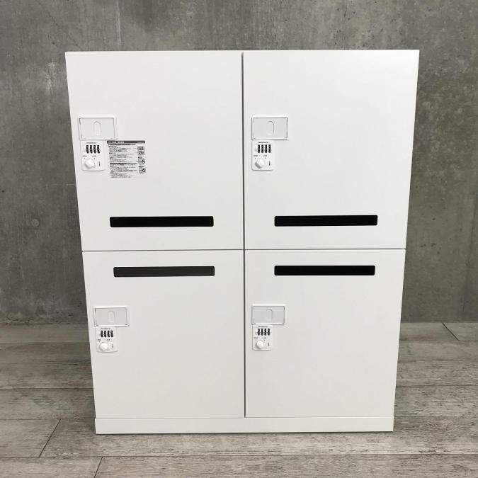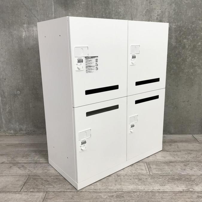 【フリーアドレスやコワーキングオフィスの相棒!4人用メールロッカー】■Okamura(オカムラ)製 4人用パーソナルロッカー ■ダイヤル錠 投函口付き ■ホワイト- なんば日本橋店