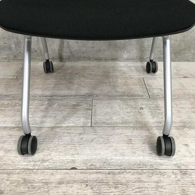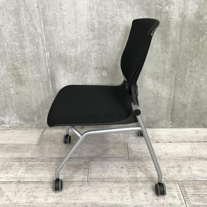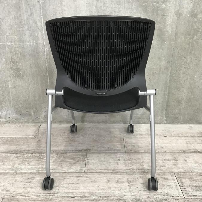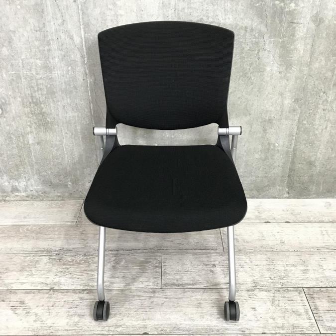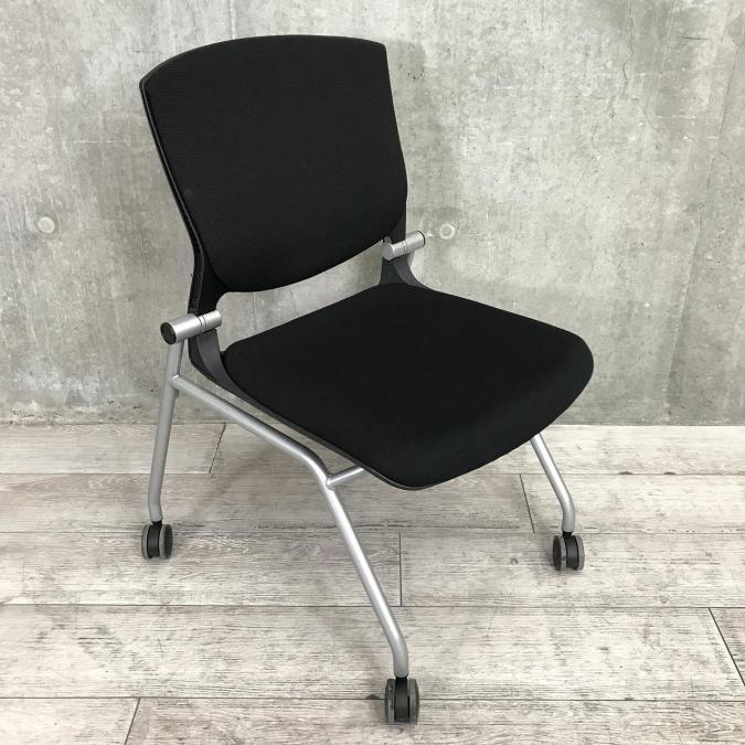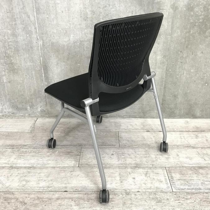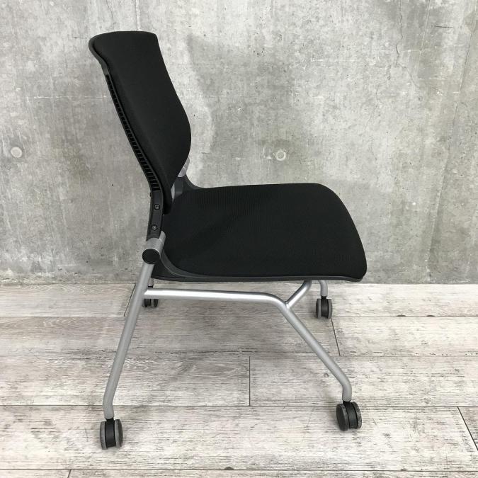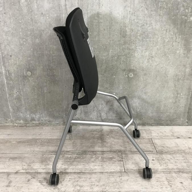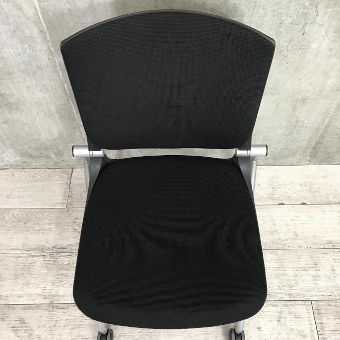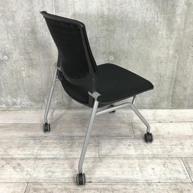 【座面がたためるネスティング仕様!】【定番人気のブラックカラー! スタイリッシュで快適な座り心地のチェアが大量入荷!】【会議室にもおススメ!】■オカムラ(okamura)製 グラータ(Grata)チェア ネスティングチェア ■ブラック ■背面樹脂メッシュ ■キャスター付 【レイアウト変更・ご移転の際などにおススメです!】