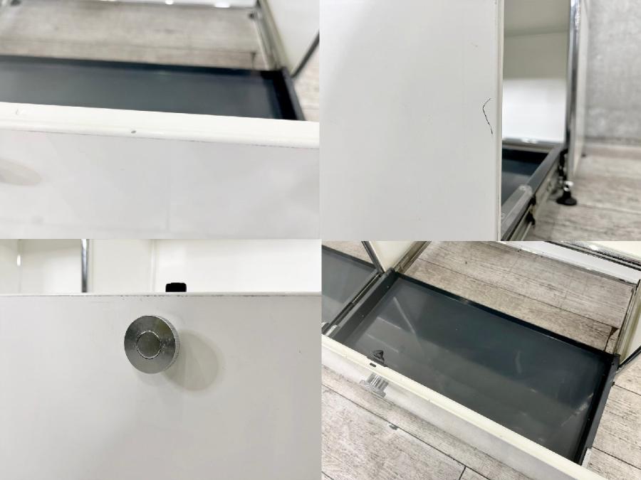 - 多数不具合あり引出の開閉不可、施錠不可、棚板無しといったその書庫の本来の効用を果たすための機能以外の多数が使用不可(例、扉、引出の開閉がしづらいなどがある。 )
