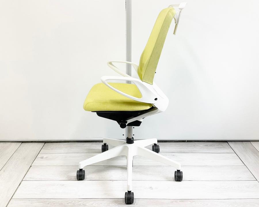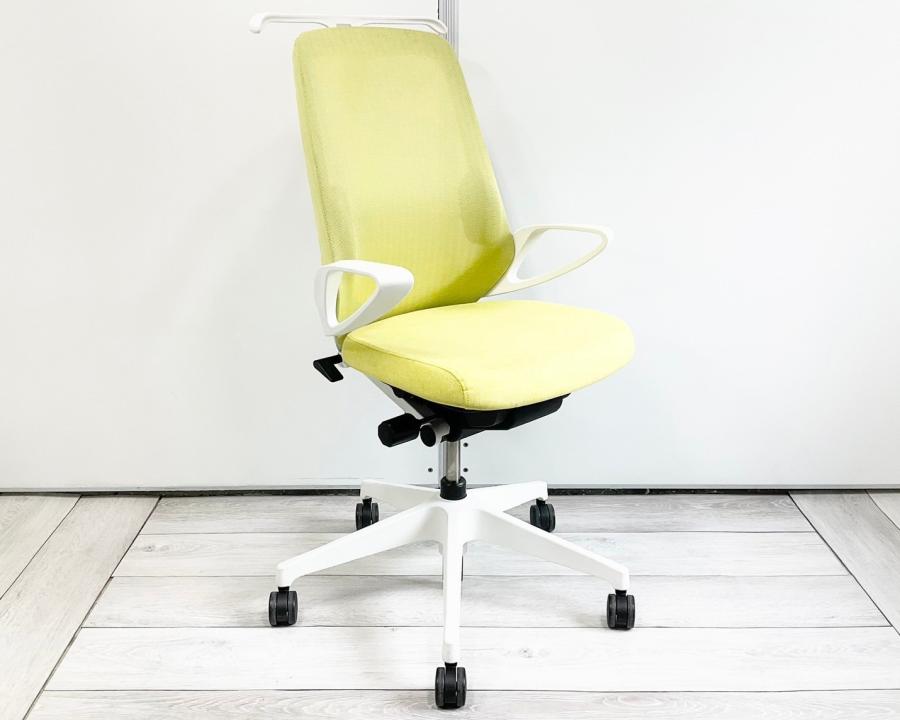 【ポップで明るいオフィスにおすすめ!優しい座り心地でインテリア性の高いデザインが人気!】■イトーキ(ITOKI)製 ノートチェア(Nort) 肘付き ハイバック テクスチャードメッシュ ■ループ肘 ■カナリアイエロー×ホワイトシェル