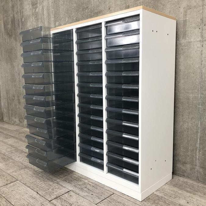 書類や文房具、部材などを細かく分けて収納できる優れものです!