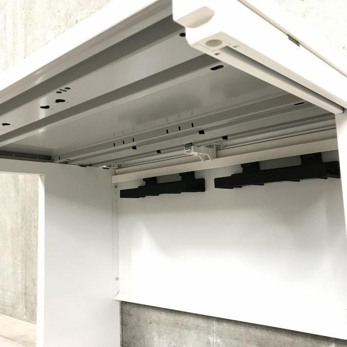 天板奥に一直線に通った大きな配線機能は、開閉カバーが2分割されており、