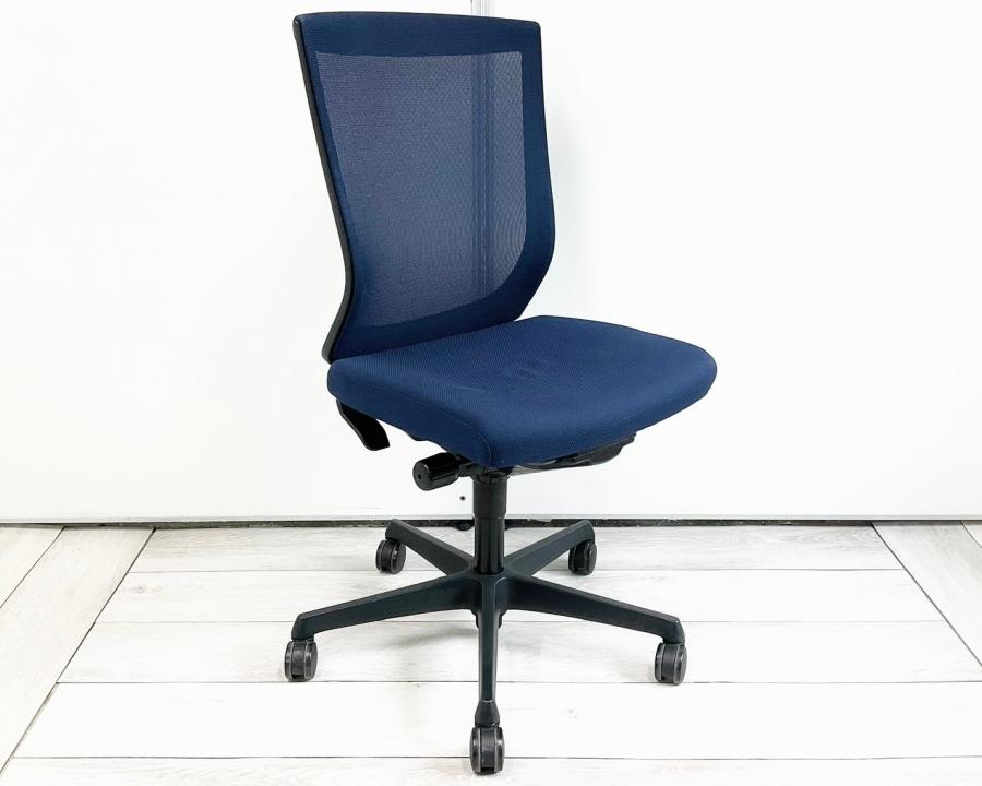 【A00962920】【デスクワークの負担を軽減!】■オカムラ製 エスクードメッシュチェア ブルー ■背中のメッシュが快適にフィット感!【在庫入替セール】