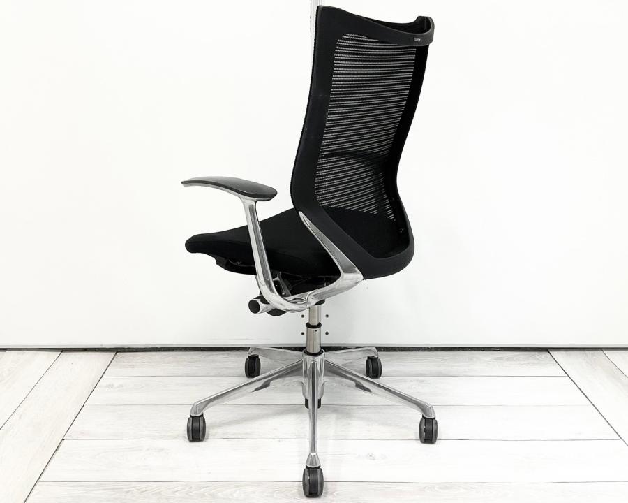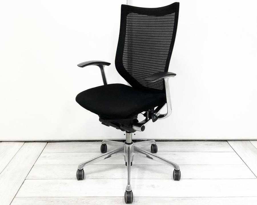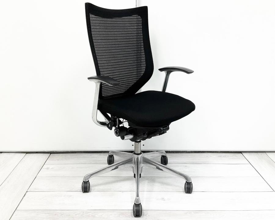 【長時間の着座でも疲れにくい!ベストなポジションが得られる先進設計!】■オカムラ バロンチェア 肘付 ブラック ハイバック シルバーフレーム ■良い椅子は腰を守る投資です!【Okamura Baron】