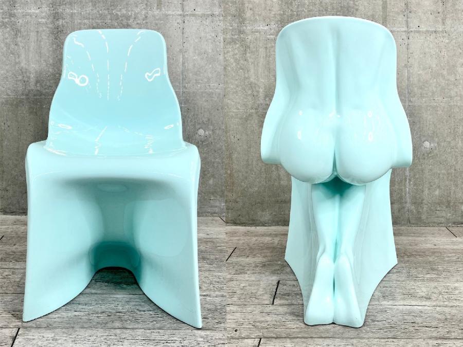 礼拝をする男女からインスピレーションを得たデザインは、実際に男女モデルの裸体を石膏で固めて取った鋳型を使用。正面からのスタイルはやはりパントンチェアを彷彿させるシンプルなデザインで背面の個性的なデザインに反し、様々な様式の空間にマッチします。ポリエチレン製で屋外でも使用可能ですのでガーデンチェアとしてもオススメです。