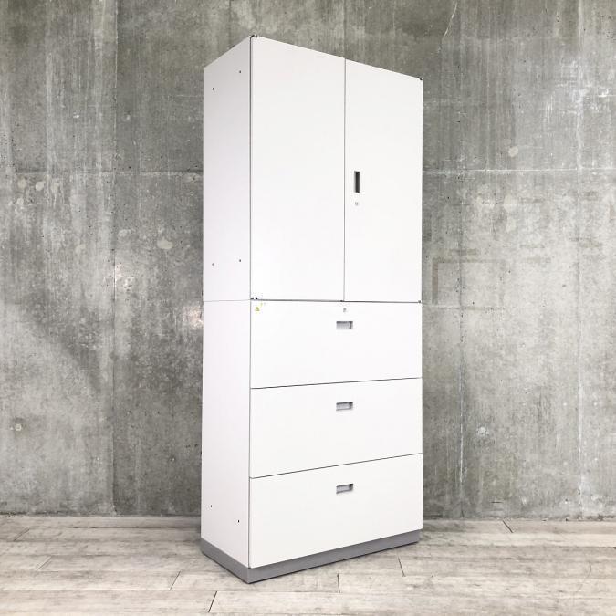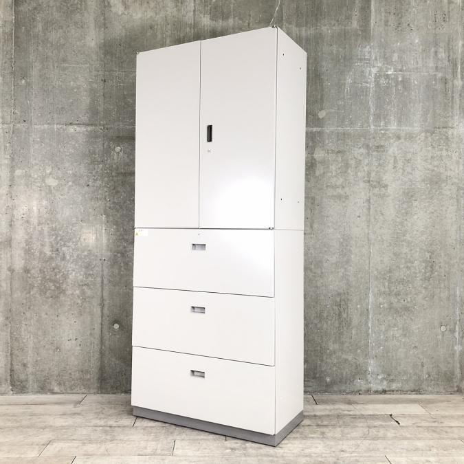 【倉庫在庫品】【これ1台で書類整理の問題が解決!上下で6段分の大容量収納!】■イトーキ (ITOKI)製 シンライン ハイキャビネット 両開き+3段ラテラル 書庫セット ■グレー ■シリンダー錠