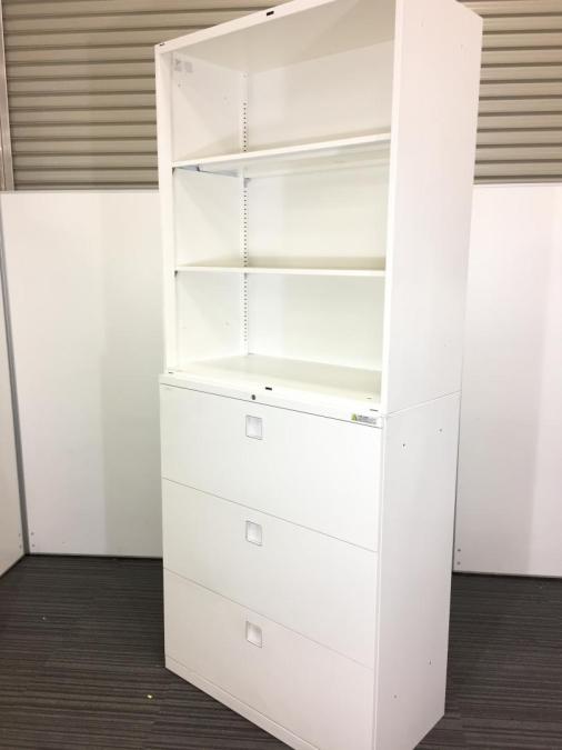 使い勝手抜群の上下書庫セット!上段オープン+下段3段ラテラル仕様! ■オカムラ/レクトライン/ホワイト