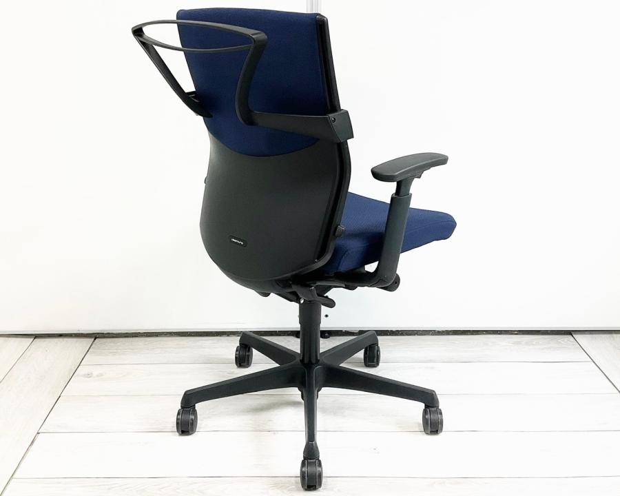 【オフィスの定番チェア!起業や入替に!】■okamura(オカムラ)製 ESCUDO/エスクードチェア 肘付ハイバック ■ダークブルー ■固定肘 ■ランバー付 【SN】