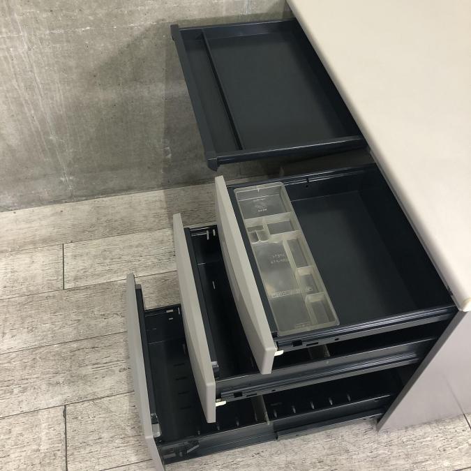 中段は書類やファイル等、下段はA4サイズ対応の引出で資料などの保管に便利です。