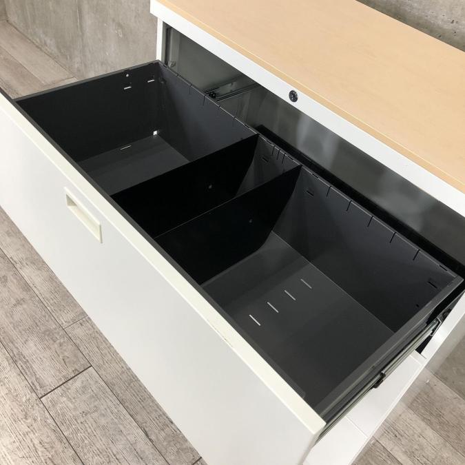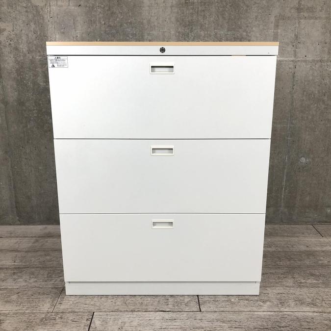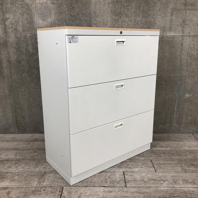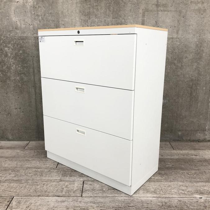 【在庫入替セール品!】安定感のある重量級!クロガネ製の定番3段ラテラルキャビネットが入荷!おしゃれなナチュラル天板付き! ■クロガネ/本体:ホワイト、天板:ナチュラル- 立川・八王子店