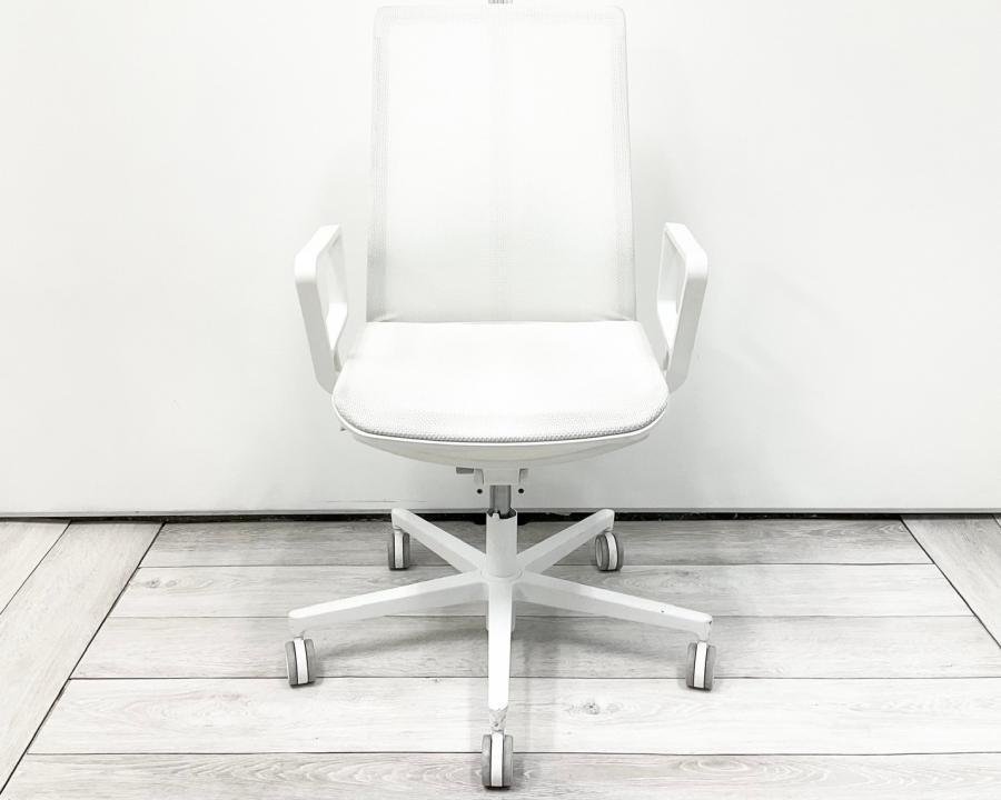 【在庫入替セール(本在庫限定価格)】★メッシュ構造で通気性抜群! ■コクヨ ファブレチェア サークル肘付ホワイト ■インテリア発想から生まれたタスクチェアー!【KOKUYO FABRE】- 川崎店