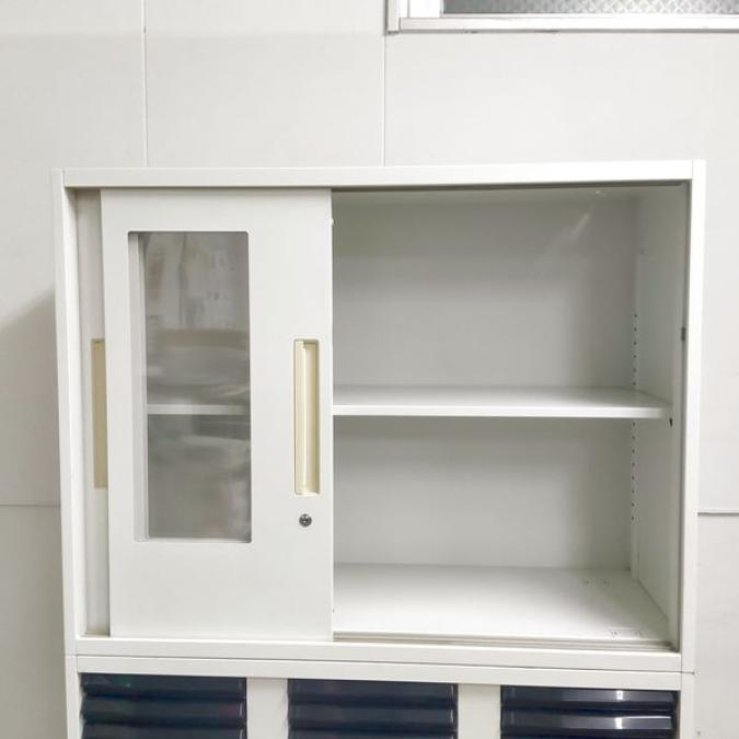 - 一部不具合ありそ引出の開閉不可、施錠不可、棚板無しといったの書庫の本来の効用を果たすための機能以外の一部が使用不可(例、扉、引出の開閉がしづらいなどがある。 )
