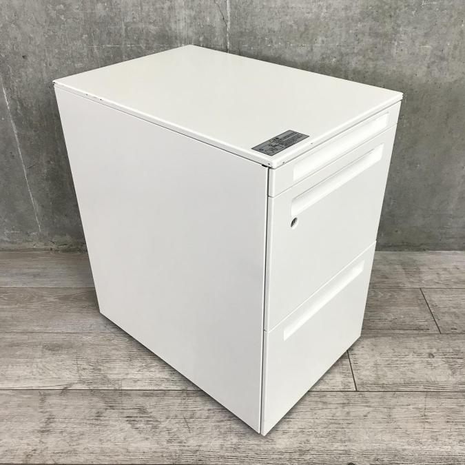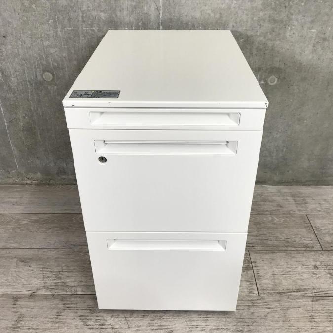 【フリーアドレスの必須品!収納とワークスペースの拡張にオススメ!】■オカムラ(okamura)製 アドバンス(ADVANCE)シリーズ 3段ワゴン フリアド用 H650㎜ ■ホワイト ■シリンダー錠 ※日焼けあり【IB】