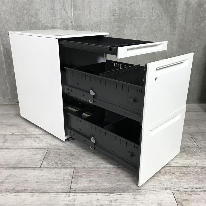 【フリーアドレスの必須品!収納とワークスペースの拡張にオススメ!】■オカムラ(okamura)製 アドバンス(ADVANCE)シリーズ 3段ワゴン フリアド用 H650mm ■シリンダー錠 ■ホワイト