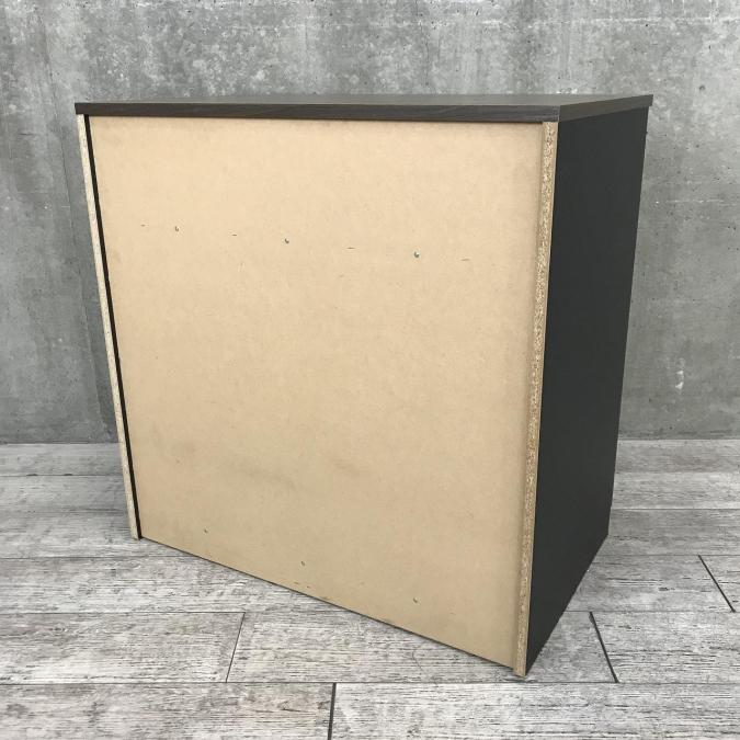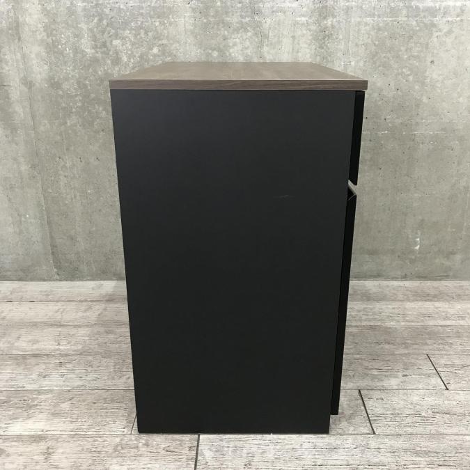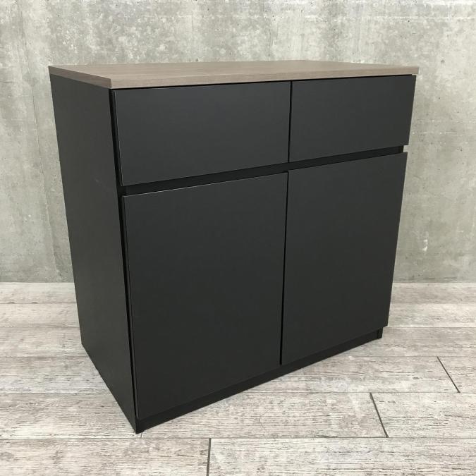 ブラック本体と木目ダーク天板の組み合わせがオシャレな収納キャビネットです。