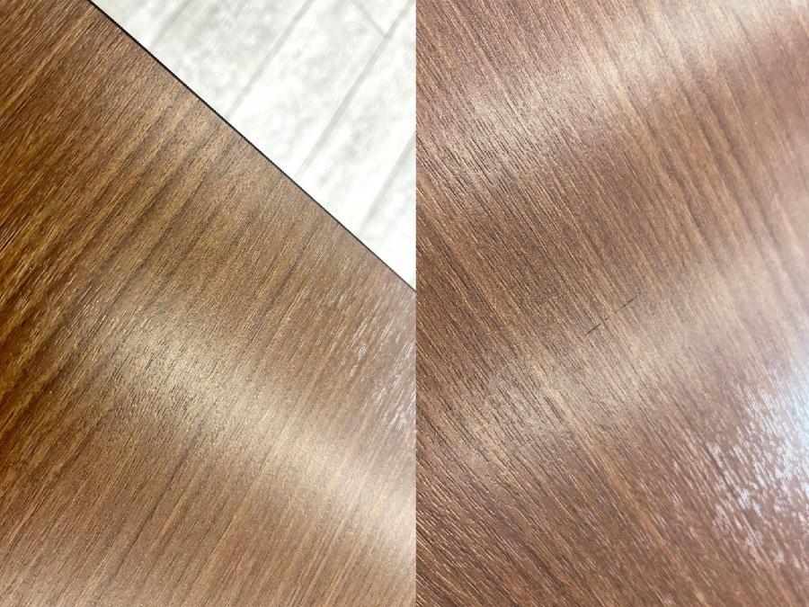 - あり黄ばみ・変色が広い範囲にうっすらある、または濃い黄ばみ・変色が一部ある。(例、天板、幕板、棚板、サイド部分、脚部等にある。)