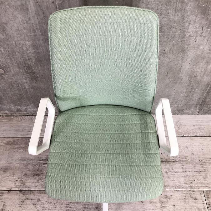 【リビングライクなデザイン!】■コクヨ ファブレチェア 肘付 オパールグリーン ファブリック ストライプタイプ☆- 東大阪店