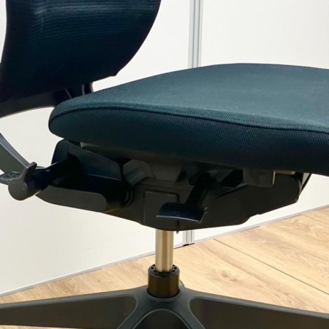 - 座面下のレバー操作により、座面を50mmのストローク(16.7mmピッチ)で好みの位置に調節できます。体格や作業姿勢に合わせたポジション設定が行えます。