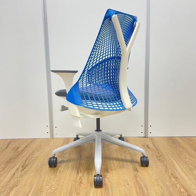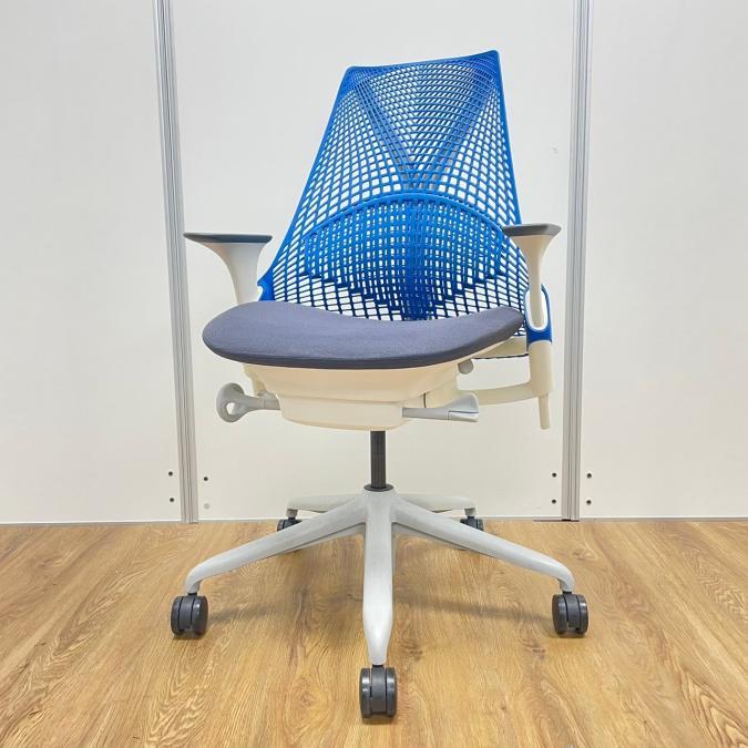 【デザイナース家具】ハーマンミラー製 セイルシリーズ 可動肘 前傾機能付き ブルーカラー 肘付きハイバックチェア!!※京都東寺店撮影※- 京都東寺店