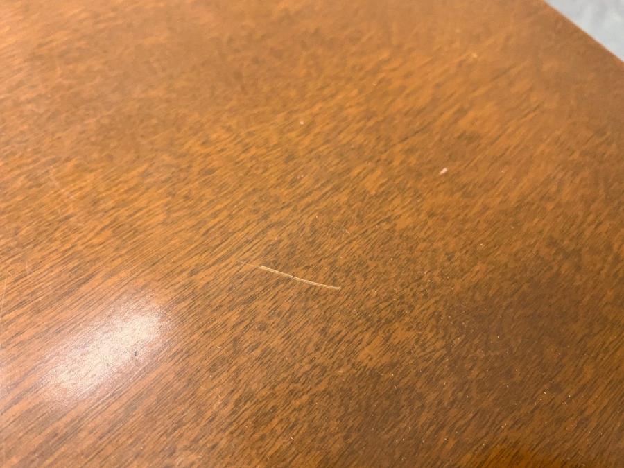 - 目立つ箇所あり傷・凹みが多数、深い傷・凹みが一部ある。(例、天板、幕板、棚板、サイド部分、脚部等にある。)