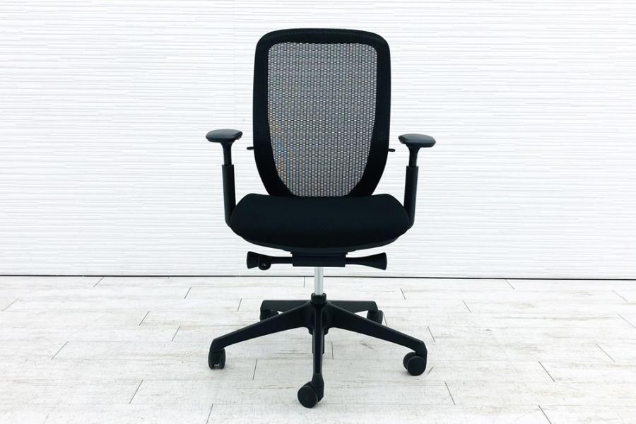 【限定1脚】【三次元曲面が身体にフィット!前傾チルト機能付き大人気メッシュチェア!】■オカムラ(okamura)製 シルフィーチェア(Sylphy) 肘付きハイバック ■背面メッシュ ■可動肘 ■ブラック×ブラックシェル ■ランバーサポート付き