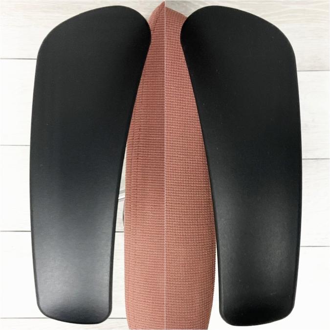 - アームパッドは90°(内60°:2段階、外30°)の角度調節が可能。コンピュータ操作時などに肘全体をやさしくサポートします。