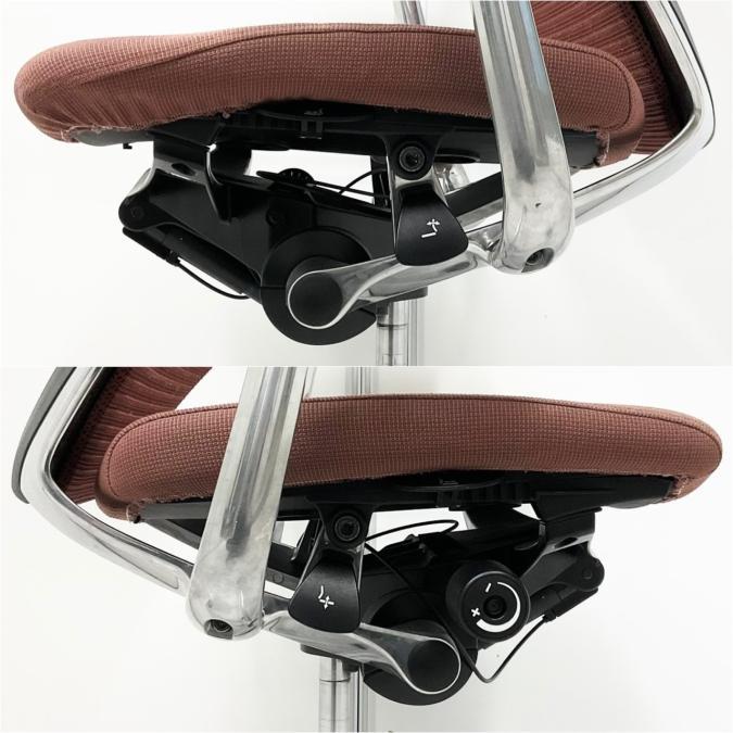 もちろん座り心地もコンテッサの直系ですから快適です。座面の素材はクッションとメッシュの2タイプあります。私、個人的には座面の中心部分でも外側でもテンションが変わらないクッション素材が、足を閉じても開いても快適なので推しです!"