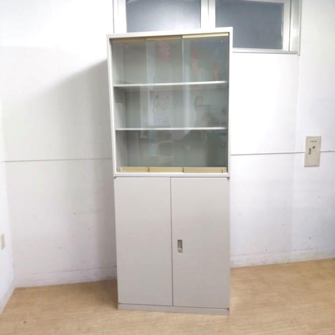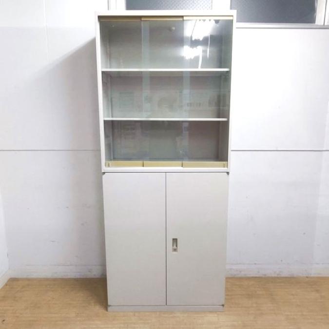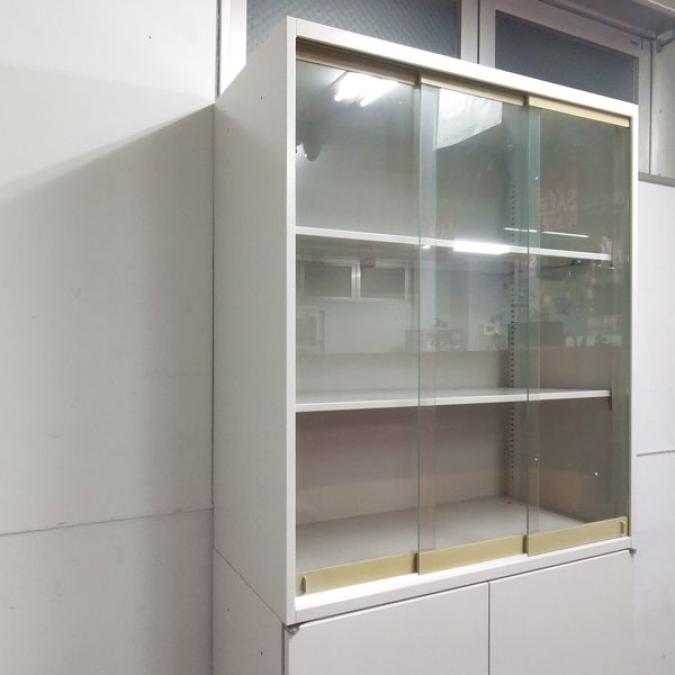 両開き扉 + ガラス3枚引き違い(錠無し) の上下セット オカムラ 42- 名古屋千種店