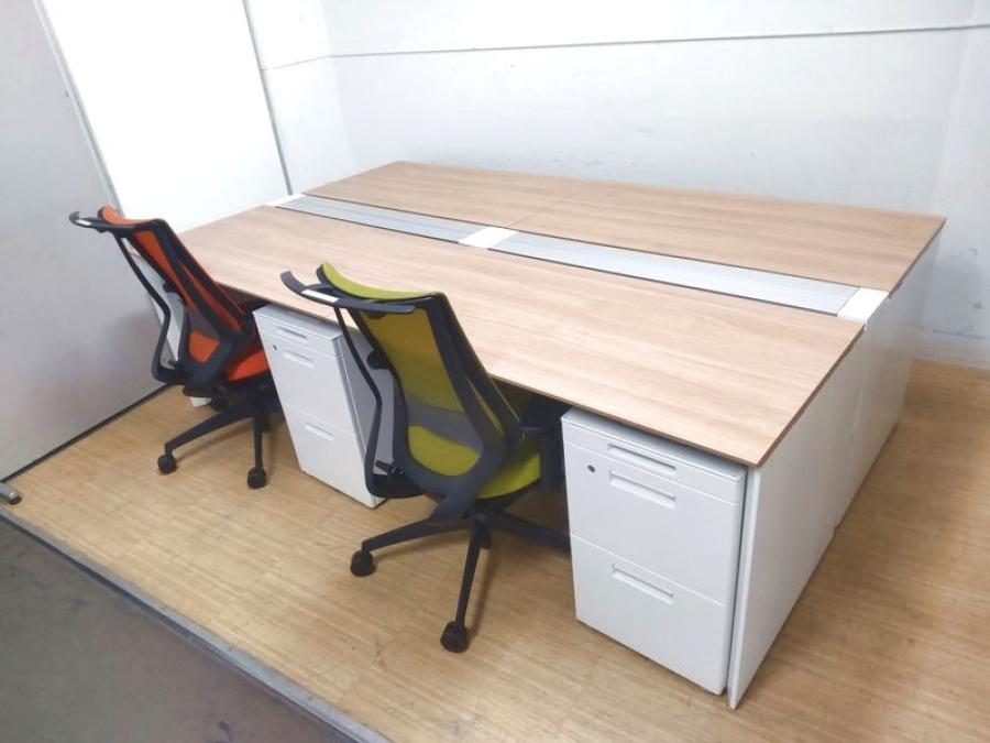 【固定席を持たないフリースタイル!】■コクヨ製 フリーアドレスデスク W6000×D1400mm ナチュラル木目カラー【倉庫在庫】