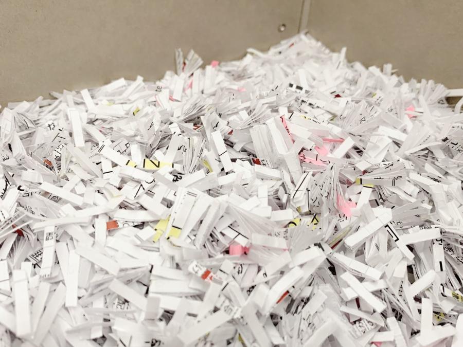 ・くず箱に振動を与えることで、片寄った細断くずを均等にならす