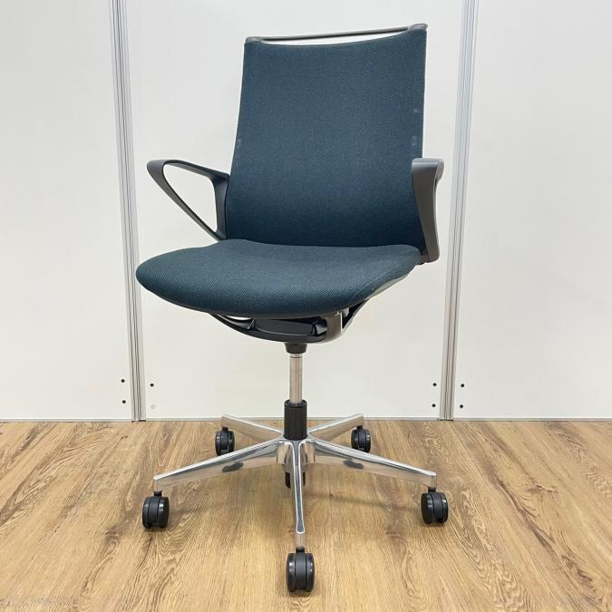 【在庫入替セール】オカムラ モード デザインアーム搭載 ミドルバック ブラック×アルミ脚 張地:クロス(プレーン) 高いデザイン性×シンプルかつ操作性のある機能